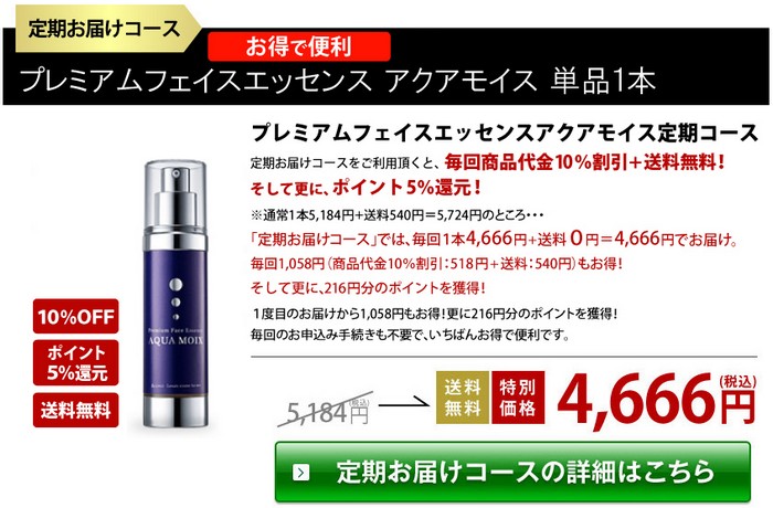 通常価格は¥5,184円ですが、定期コースにすると10%off¥4,666円の割引となります。